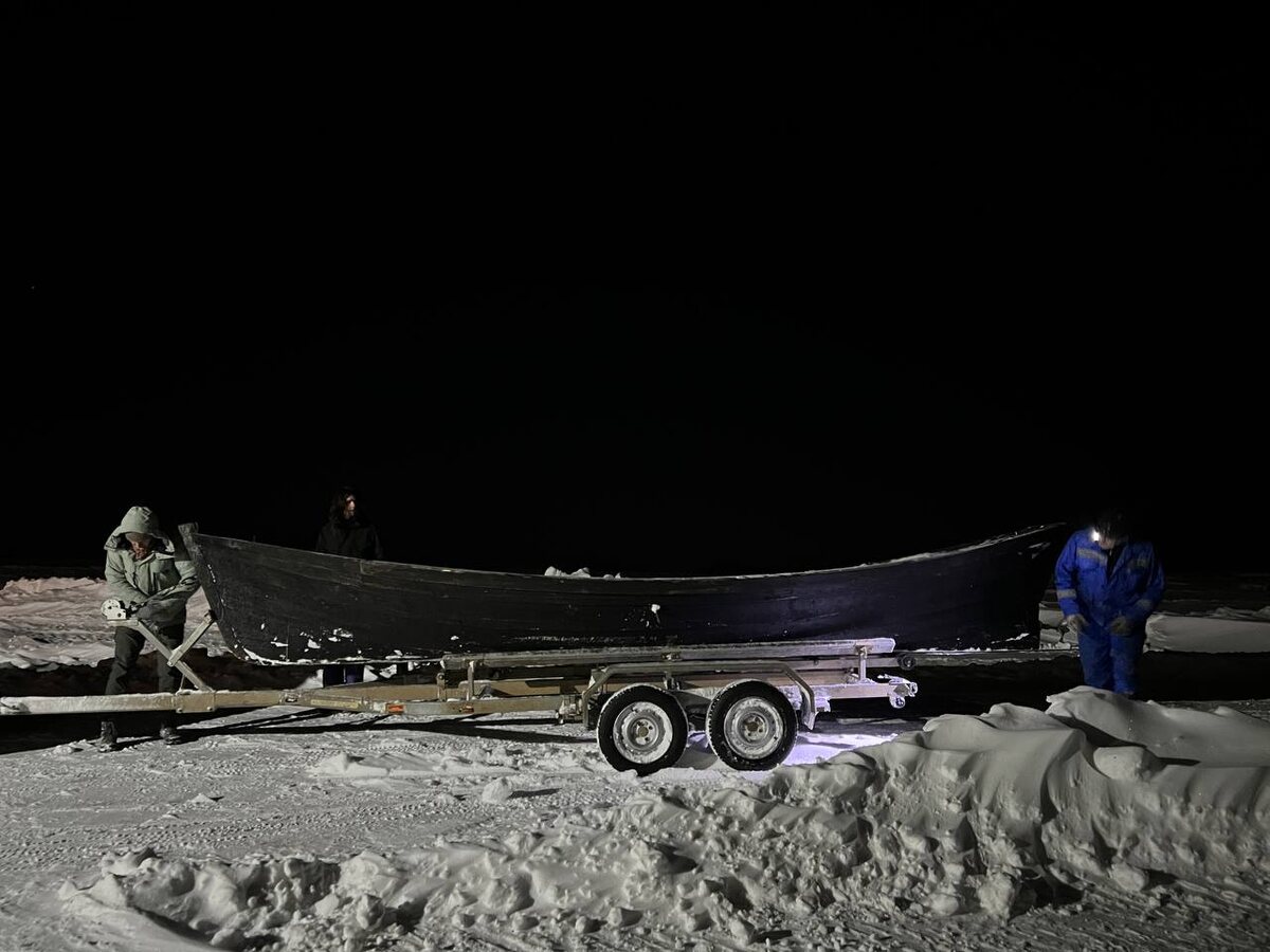 Поездка на Мезень никогда не обходится без приключений и без добычи хотя бы одного, но настоящего — карбаса. В январе этого года мы снова двинулись по снежным переправам. Ночь, мороз, треск снега под ногами — и вот он, красавец, ждёт нас в Юроме. Тридцать лет он простоял на повети, мечтая о воде. Шил его Пётр Дмитриевич Парыгин — отец нынешнего владельца, Анатолия. Петр Дмитриевич шил карбас для моря, но волею судьбы уехал жить в Каменку, а лодка осталась пылиться в родовой деревне Защелье. Мы нашли её случайно — на Авито. На фото — старая доска, серый корпус, но в ней чувствовалась сила. Такие лодки уже не делают. И мы решили — забираем. Думали, куда её пристроить: в Карбас-музей в Кальчино — чтобы стояла как память, или на Кенозеро — чтобы снова почувствовала воду под килем. Решили просто: если Александр сумеет завести мотор — лодка поедет на Кенозеро. Если нет — в музей. Но мы-то знаем Александра. А значит, скоро карбас снова пойдёт по воде. Юромский карбас нарекли Тороком — так наз