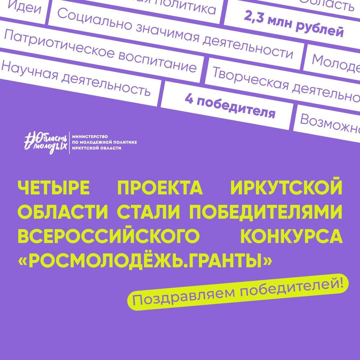 🔥Четыре проекта Иркутской области стали победителями всероссийского конкурса «Росмолодёжь.Гранты