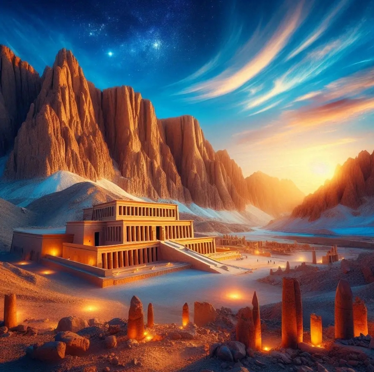 То же самое мне показывали для книги «Иисус и волхвы» про храм огня, он же храм Хатшепсут. Там слева портал на огненную планету.