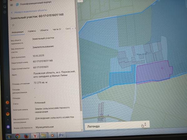 Название: земельный участок для сельскохозяйственного использования Канал: Госземля Псковская область Область: обл Псковская Район: м.о. Порховский Населенный пункт: д Малые Липки Локация: Смотреть на карте ВРИ: Сельскохозяйственное использование Кадастровый номер: 60:17:0151601:148 Кадастровая стоимость: - Вид сделки: Продажа Площадь: 72275 м² Начальная цена: - руб. Дата завершения: 11.12.2025 Подробнее: ГИС ТОРГИ #госземля #земляотгосударства #земля #земельныйучасток #земельныеторги #торги #аукцион #продажаземли #продажа #псковскаяобласть