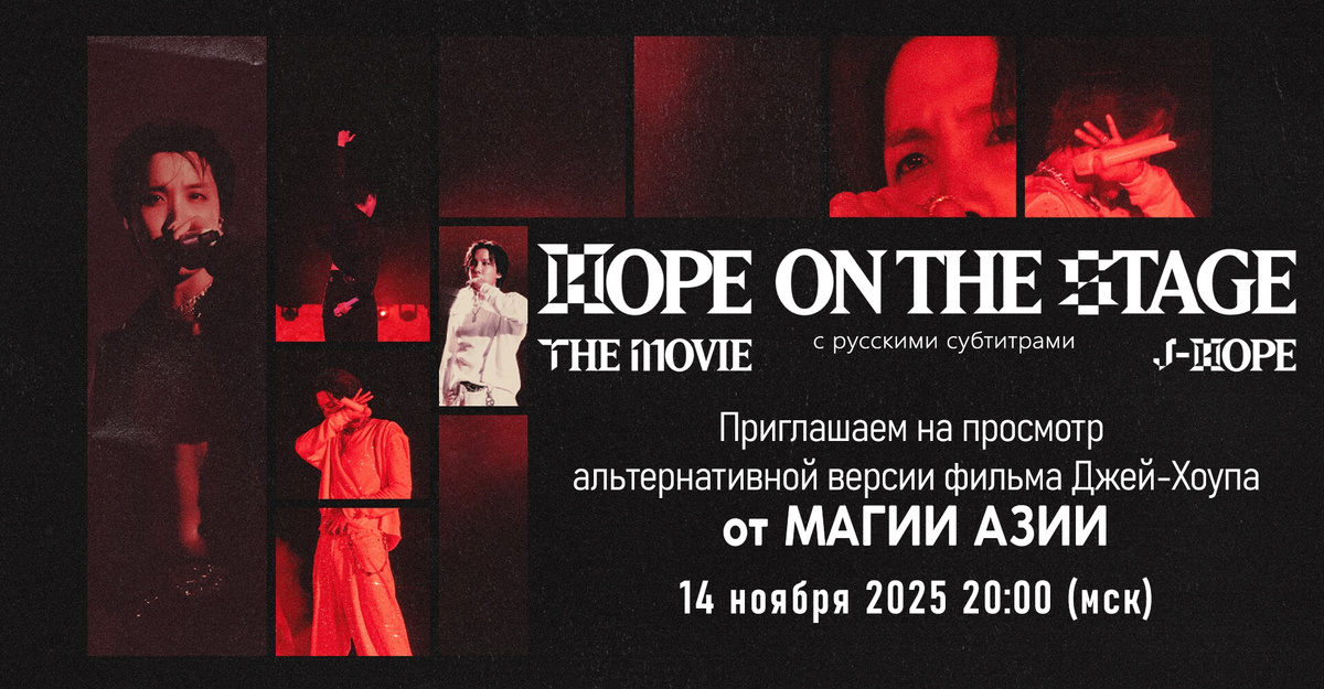 Добрый день. Это «Магия Азии» и яШа. Сегодня многие АРМИ по всему свету собираются в кинотеатры на просмотр фильма HOPE ON THE STAGE THE MOVIE. Увы, нас такая участь миновала – прокат фильма на территории Российской Федерации не предусмотрен. Печально, но не будем расстраиваться раньше времени (хотя очень обидно). Пресс-релиз говорит, что HOPE ON THE STAGE TOUR THE MOVIE запечатлел живые выступления, неизданные сцены и закулисные истории. А по отзывам счастливчиков, что попали на предрелиз картины в Корее и Японии 3 ноября, у меня сложилось впечатление, что это фильм-концерт по итогам энкоров, прошедших в Сеуле на стадионе «Гоян» 13 и 14 июня 2025. И чтобы не расстраиваться, что мы не можем посмотреть фильм у себя, в своих кинотеатрах, мы решили подготовить свою версию фильма для просмотра «дома». Мы собрали версию - компиляцию из финальных концертов Джей-Хоупа, и хотим провести трансляцию концерта на доступной площадке в ВК. (тут самое время предложить вам подписаться на наш ВК – это