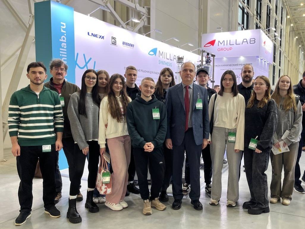 Студенты химико-технологического факультета ТвГТУ побывали на международной выставке «Химия» С 10 по 13 ноября в ВК «Тимирязев Центр» в Москве проходит 28-я международная выставка химической промышленности и науки «Химия-2025». Международная выставка «ХИМИЯ» является одной из наиболее престижных выставок в своей отрасли, площадкой для встречи производителей химической продукции и услуг, поставщиков передовых технологий и оборудования и потребителей различных отраслей из разных стран. Специалисты отмечают, что выставка оказывает существенное влияние на развитие химического и нефтехимического комплекса, а также других отраслей. Студенты 4 курса химико-технологического факультета ТвГТУ (специальности «Химическая технология биологически активных веществ» и «Химия»), приняли участие в выставке «Химия-2025» и смогли познакомиться с современными тенденциями химической промышленности. На выставке студентов сопровождали декан химико-технологического факультета ТвГТУ Косивцов Юрий Юрьевич и п