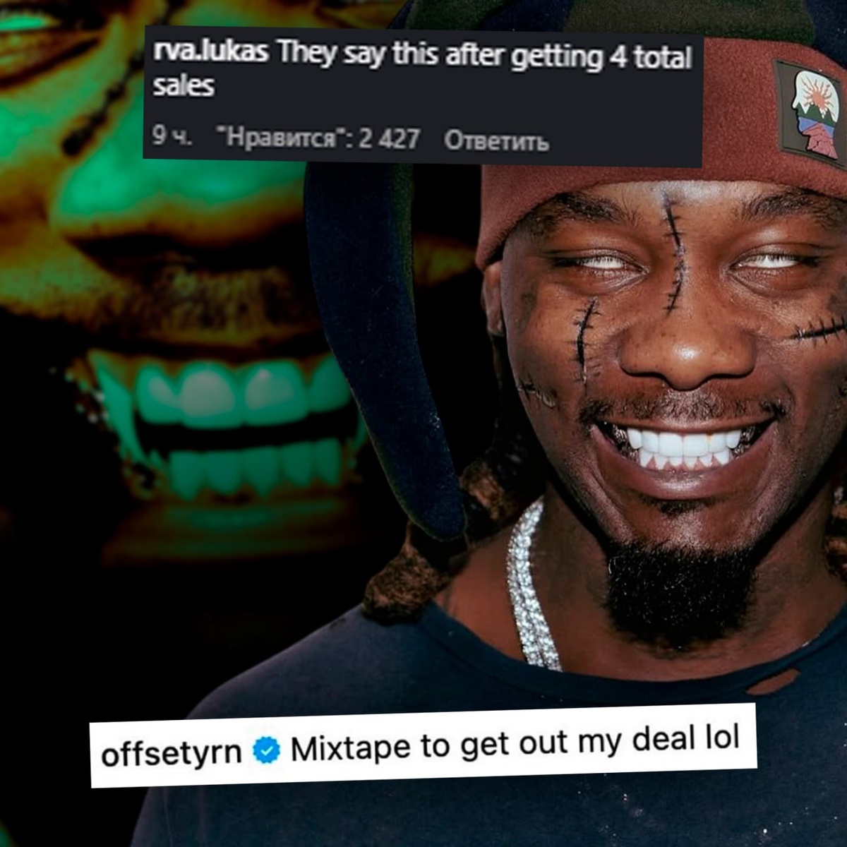 Offset пошел по стопам Lil Uzi Vert 🧐 Спустя 12 дней после дропа «Haunted By Fame» он написал: - Микстейп чтобы выйди из сделки lol К слову, фанаты начали высмеивать рэпера, так как данный релиз не попал в чарт Billboard 200 Комментарий с 2.4К лайков: - Они так говорят, когда собирают 4 проданных копий CODEINE CRAZY.
