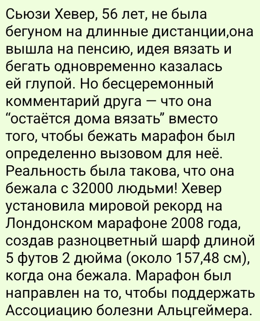 Что вязать можно и на ходу...и на бегу... ❤️Здравствуйте,дорогие друзья!❤️ Вот интересный факт, -выдержки с просторов интернета... ❤️Сьюзи просто молодчина! И других слов у меня нет... А вы как считаете??? ❤️Я,конечно,помоложе Сьюзи, но знаю точно,что у меня так не получится...