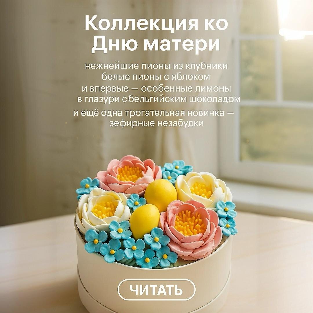 Делюсь с Вами новой коллекцией ко Дню матери. В этот раз - нежнейшие пионы из клубники, белые пионы с яблоком и неповторимые лимоны в моей фирменной шоколадной глазури на бельгийском шоколаде. Это не просто глазурь, а результат авторской технологии! Обещаю, результат вы почувствуете сразу: тонкая хрупкая корочка и чистый вкус. И ещё одна трогательная новинка - зефирные незабудки. Эти нежные цветочки - не просто угощение, но и символ Дня матери, который напоминает о заботе и нежности. Вы можете выбрать монобукет из незабудок или сочетание с пионами - всё натуральное, без лишней химии. Просто напишите, что вас интересуют незабудки, и я помогу вам выбрать идеальный вариант и упаковку. Особенность моих зефирных цветов в том, что это не просто десерты, а маленькие съедобные подарки, сделанные с любовью из натуральных ингредиентов. У меня есть витрина с разнообразными зефирными композициями – нажмите на выделенный текст, чтобы перейти и выбрать особенный букет ко Дню матери(смотри закре