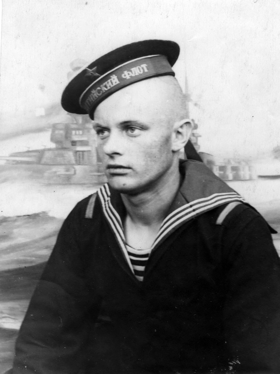 Старший матрос Балтийского флота во фланелевой рубахе с нашивными погончиками образца 1943 года