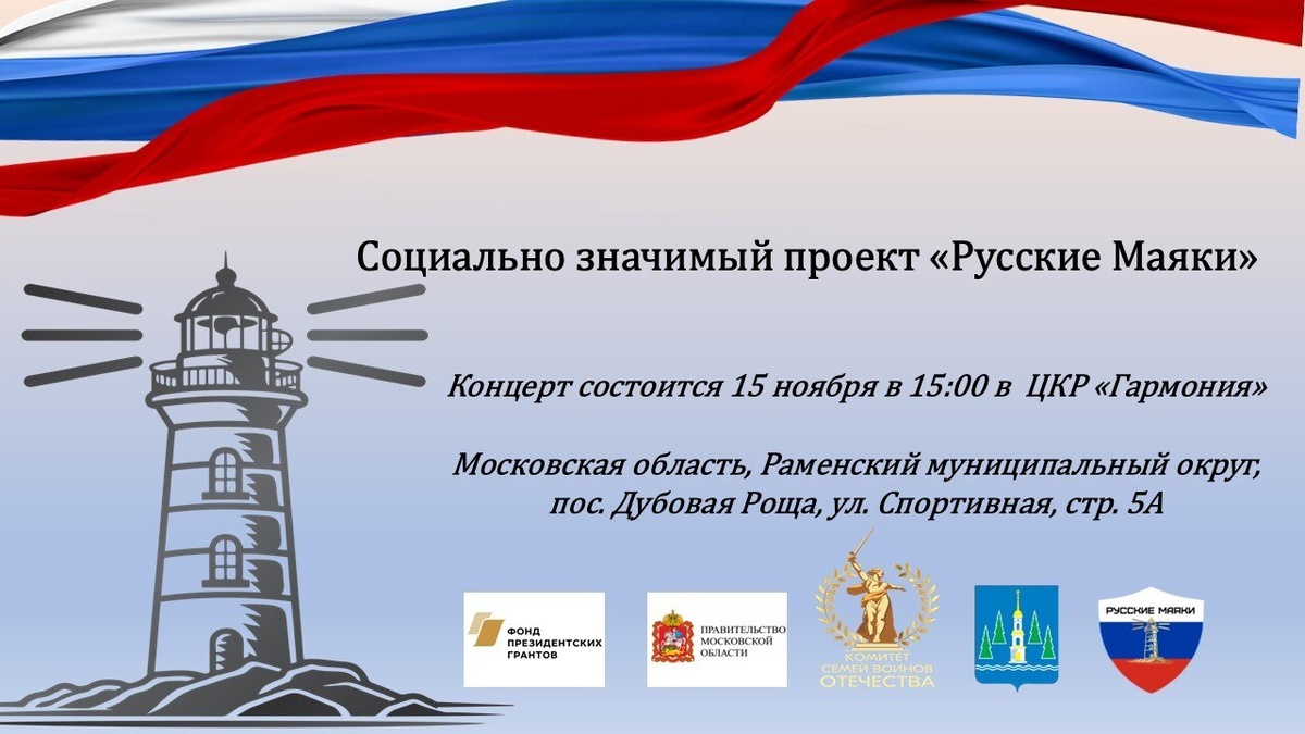 🇷🇺 В центре культурного развития «Гармония» состоится концерт, посвящённый социально значимому проекту «Русские Маяки» - проекту, который