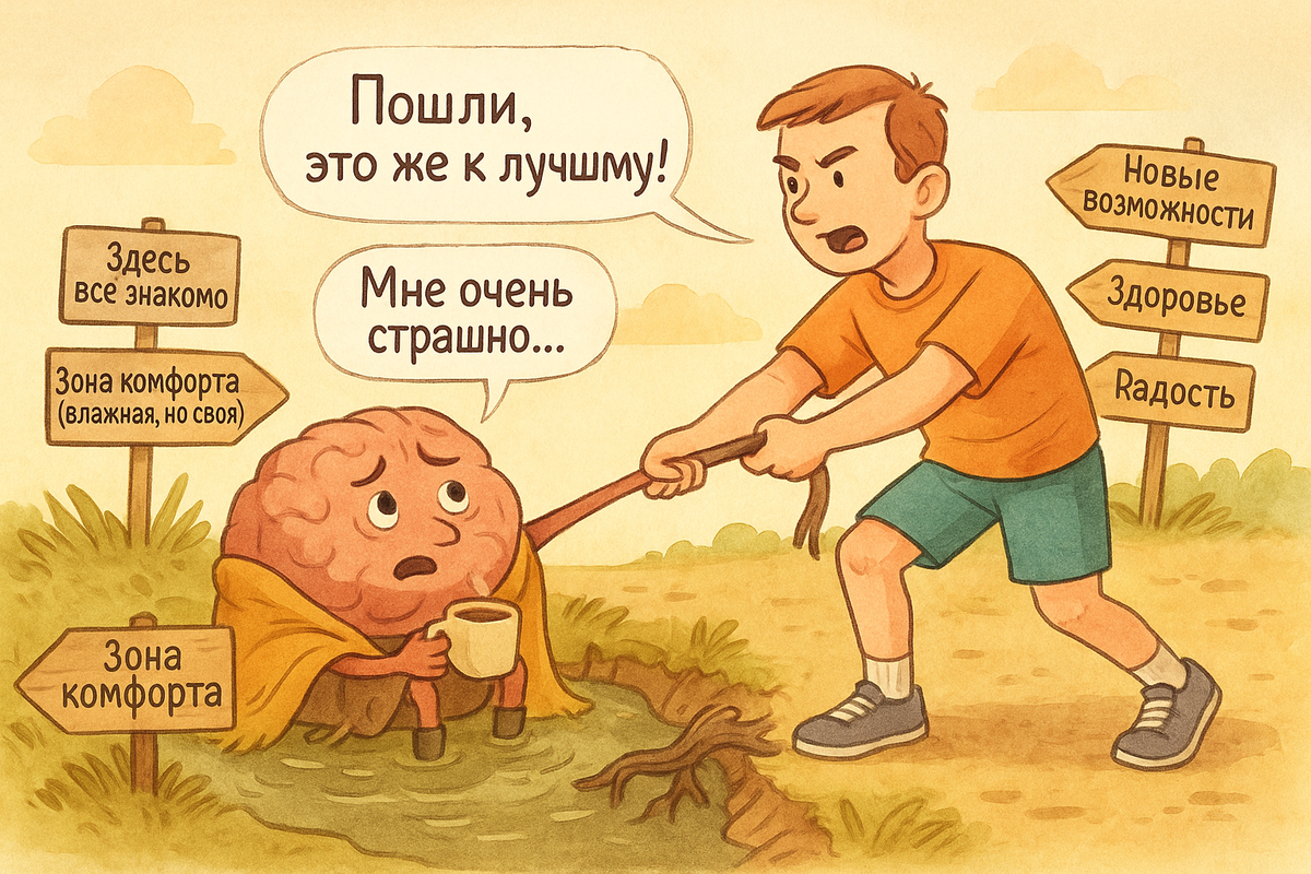 Мозг сопротивляется новому не потому, что не хочет вашего счастья, а потому что хочет вашей безопасности. Он не знает, что за поворотом, пока вы туда не войдёте. И только когда вы входите - шаг за шагом, без давления - мозг обновляет карту реальности и начинает помогать, а не мешать.