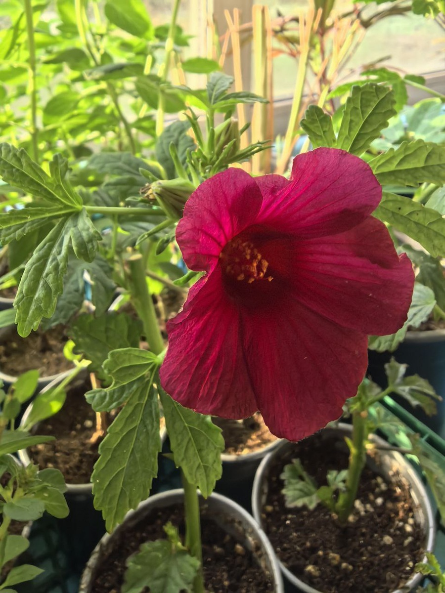 Гиби́скус коноплёвый, или кена́ф (лат. Hibiscus cannabinus) — однолетнее травянистое растение рода Гибискус семейства Мальвовые, прядильная культура. В сухих стеблях до 21 % волокна, используемого для изготовления технических тканей, в семенах — до 20 % технического масла. Возделывают в Иране, Индии, Китае, Бразилии, США. Волокно, называемое «бомбейской пенькой», используется в морском деле для выделки тросов. До Первой мировой войны ввозился в Российскую империю из Персии, и в тот период назывался русским джутом (также и кенафом). В советское время опытные посевы кенафа практиковались в Узбекистане, Приморье. #гибискус #каркадэ #клубнаядача