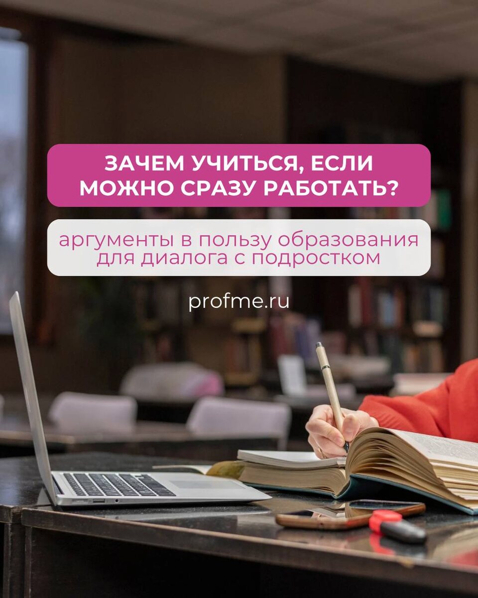 Зачем учиться, если можно сразу работать? 🤔 Некоторые подростки стремятся к самостоятельности и независимости раньше. Чувствуют, что превосходят своих сверстников в жизненных навыках, если уже начали подрабатывать, и не видят смысла сидеть за партой, когда есть возможность переходить к активным действиям. Однако, подросток не задумывается о том, как сохранять текущие преимущества на длинной карьерной дистанции. Ему не очевидно, что потолок уже близко, через 5 лет сверстники будут выходить на рынок труда на другом уровне игры, и он резко окажется в отстающих. ➡️ Стоит рассказать подростку про ловушку «исполнителя». Проще всего использовать примеры из медицины: спросите ребенка, почему медсестра не сможет стать врачом, даже есть будет очень много и хорошо работать? А ведь зарабатывать она начала гораздо раньше тех, кто 8 лет ходил в интернах. Собрала аргументы в пользу образования в карточках, предлагаю применять в дискуссиях с подростком. Помним, что наша задача не переубедить в мо