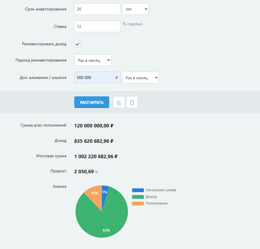 Миллиард может меня настигнуть в возрасте 56 лет. При этом, в расчёт я заложил не ахти какие условия: ▪️ Срок 20 лет. ▪️ Ставка доходности 12% годовых. ▪️ Ежемесячные пополнения 500 тысяч ₽ в месяц. Да, придется потрудиться, ибо 500 тысяч в месяц откладывать может не только лишь каждый. Ставка 12% выглядит довольно реалистично - напомню, сейчас по ОФЗ с погашением в 2040 году доходность в районе 14,5-15,0% годовых. Короче, всё в твоих руках, Саша! И на то есть две причины: 1. Инфляция убивает идею постановки целей в абсолютных числах. Цели надо ставить в числах относительных (месяцы жизни, доля покрытия расходов пассивными доходами). Что такое миллиард рублей через 20 лет? Мы не знаем. Нет, это по-прежнему будет приличная сумма, но она не будет поражать воображение. Например, ещё лет 10 назад считалось, что стать долларовым миллионером - значит, стать частью мировой элиты и решить все свои финансовые вопросы. Но что такое миллион долларов сейчас? Это обычная квартира в приличном райо