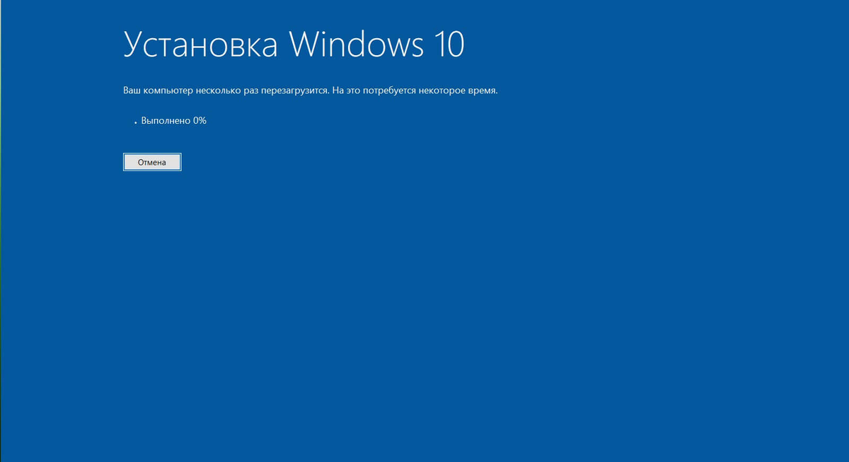 Компьютер перезагрузится, и вы увидите логотип Windows 10 с крутящимися точками — это начало установки.