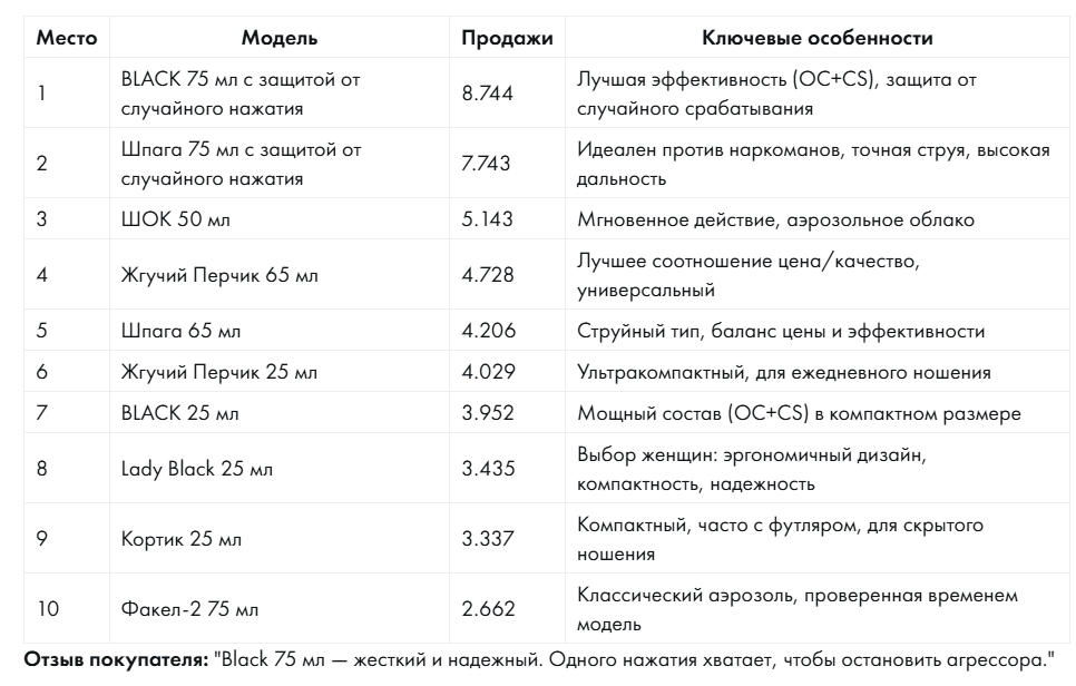 Реальные данные продаж, экспертные сравнения и ответ на главный вопрос: какой лучше купить перцовый баллончик для самообороны.