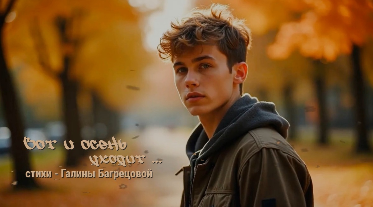 Её название "Вот и Осень уходит ..." Вы можете её послушать на сайте Рутуб ... ................ Вот и Осень уходит ... с золотой акварелью а тебя называл я - любимой своею ... доверял всё что было, обещал всё что будет только это уплыло ... в неизбежности сУдеб ... ................ и листы полетели, как обрывки тет ради мы себя не жалели, и других - бога ради ... да и что эти чувства, как остатки желаний и опять в жизни пусто на пороге свиданий ... ................ почему ты уходишь, как всегда не прощаясь снова мысли наводишь, вновь к тому воз вращаясь ... только то не случится, всё прошло и забыто как осенняя птица улетела открыто .... ................ и листы полетели, как обрывки тетради, мы себя не жалели и других - бога ради да и что эти чувства, как остатки желаний и опять в жизни пусто на пороге свиданий ... ................ и душа опустела, не осталось ни крошки, постаревшее тело ещё помнит немножко. эти тёплые руки, эти губы желаний и последний момент одиноких свиданий ... ..