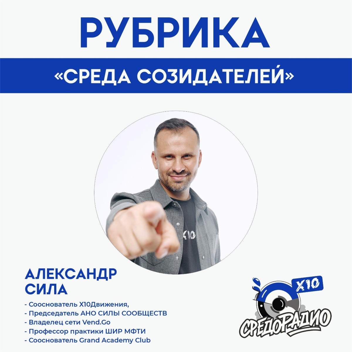 🎙 СРЕДА СОЗИДАТЕЛЕЙ — сегодня в среду 12 ноября в 15:00! На волнах СРЕДОРАДИО — новый выпуск рубрики «Среда созидателей» по следам проекта «Проявленные» Рыбаков Фонда В гостях 💡 Александр Сила, человек, утверждающий, что «Люди учатся об людей». 🔹 Чем отличается лидер, создающий сообщество, от обычного руководителя? 🔹 Почему важно объединять талантливых молодых лидеров вокруг одной идеи? 🔹 Какие практические шаги предпринимал Александр, создавая экосистемы успеха среди молодежи? Александр Сила поделится своим уникальным опытом: - Сооснователь движения X10 Movement - Успешный предприниматель с оборотом свыше 1 млрд рублей - Основатель сети вендинга Vend.Go - Профессор практики Школы инноваций и развития (ШИР) МФТИ - Выпускник программы «Ярд с Игорем Рыбаковым» - Один из основателей закрытого клуба интеллектуального роста Grand Academy Club Эфир: https://myradio24.com/5559 Приложение MyRadio24: https://dzen.ru/media/sredoradio/-68945075272f5b1d26ed07e3 Телеграм: https://dzen.ru/id