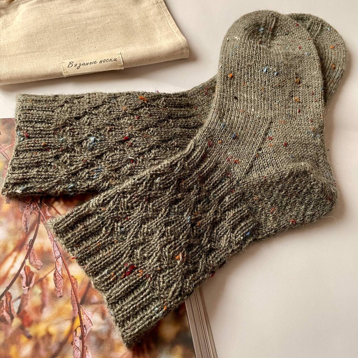 Вторые носочки из моего совместника, необычное получилось сочетание узора с твидом 😍 Вообще очень тоже люблю твид и часто из него вяжу )) вот мои любимые твидовые носочки ☺️