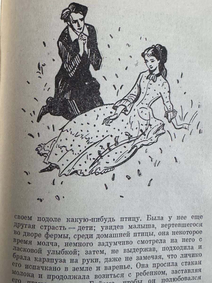 1. Интересно, о чём он просит её? 2. Как классно решено пространство: благодаря чёрным точкам и штрихам «травы» белая поверхность листа волшебным образом преобразуется в пространство полянки, на которой они сидят. P. S. Про контраст чёрного и белого в композиции промолчу. Это слишком очевидно.