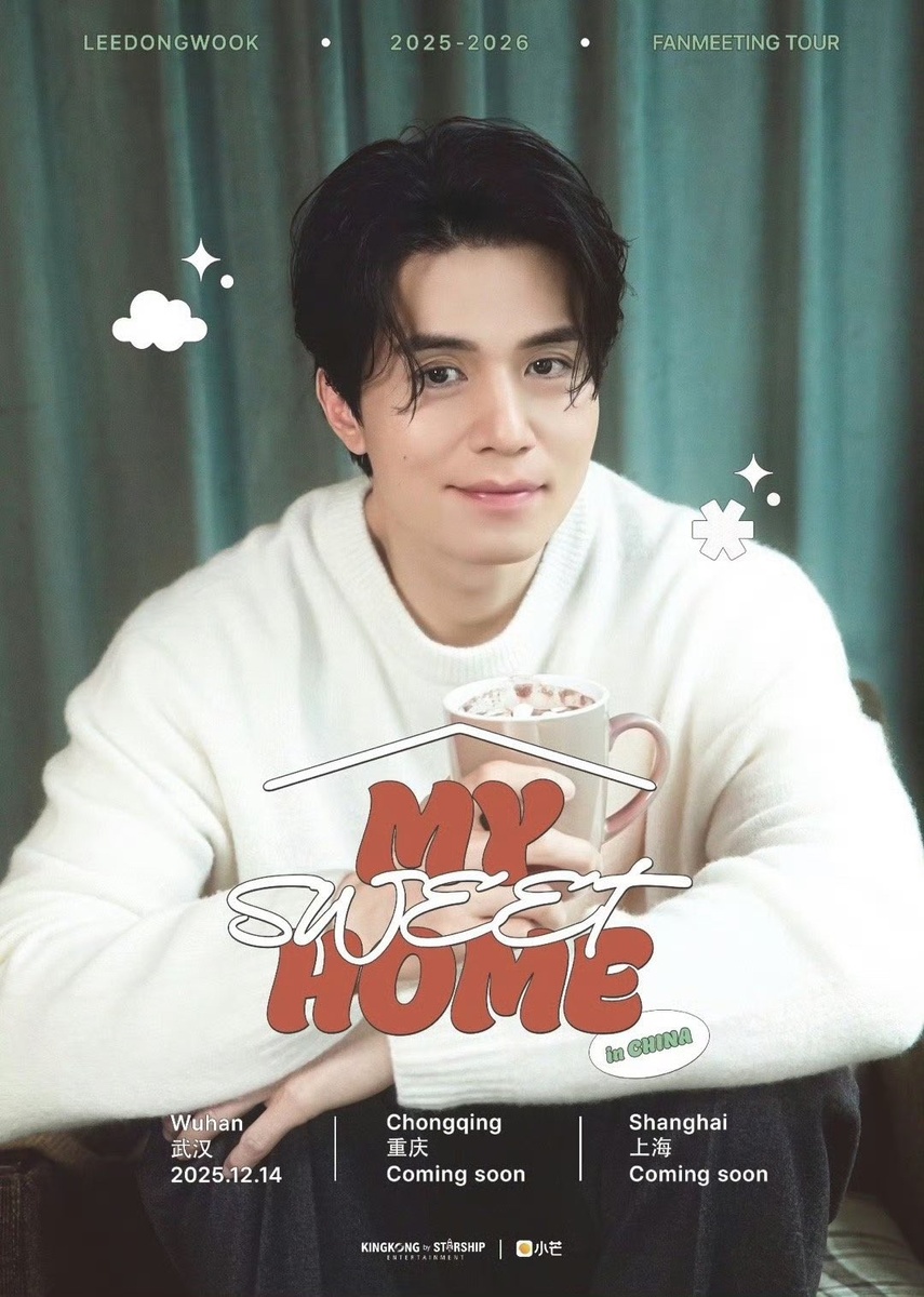 Похоже, Донук запланировал турне для встреч с фанатами! Кто готов лететь в Китай на встречу с оппой? Анонс фанмитов Дон Ука в Китае: Ухань (14.12.2025), Чунцин (скоро), Шанхай (скоро). Небольшое видео-приветствие для китайских фанатов «Всем привет! Я — Ли Донук. Рад встрече. Это Ли Донук. Наконец-то я провожу фанмитинг в Китае. Это мой первый фанмитинг в Китае. В течение предыдущего фанмитинг-тура у меня не было возможности сделать это в Китае. Мой первый фанмитинг в Китае будет проведён в городе Ухань. Думаю, это будет хорошая возможность встретиться с моими китайскими фанатами так близко. Так что я уже очень взволнован и очень жду встречи. Если вы сейчас поищете «Ли Донук» в приложении Xiaomang, вы сможете найти новости про фанмитинг. Давайте тогда встретимся 14 декабря в Ухани». 20 декабря 2025 года Ли Дон Ук привезет фанмит My Sweet Home в Манилу (Филиппины) — встреча фанатов на один день, которая обещает тепло, смех и незабываемые воспоминания. Из объявления организатора: Праздни