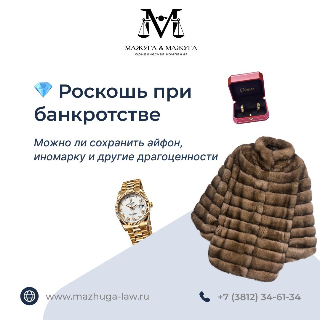 Волнуетесь, что заберут последнее -телефон, машину, украшения? Давайте разберемся, что действительно могут включить в конкурсную массу. 📱 Смартфон Дорогой iPhone 15 Pro Max - вероятно, да. Старая, но рабочая Samsung - нет. Суд смотрит на стоимость телефона. Если он ваш самый ценный актив, его могут реализовать для расчета с долгами. 🚗 Автомобиль Машина стоимостью до 500 000 руб. - защищена законом! А вот Porsche за 5 млн - точно заберут. Но есть нюансы: • Если авто - инструмент для работы (такси), шансы сохранить выше. • Единственная машина в семье обычно сохраняется. 💍 Драгоценности и 👗 Гардероб: Обручальные кольца - неприкосновенны! А вот коллекционные украшения или норковая шуба - под вопросом. Повседневная одежда и обувь остаются с вами. 📊 Как оценивают "роскошь"? • Сравнивают с уровнем жизни в регионе. • Смотрят на соотношение стоимости вещи и ваших доходов. • Учитывают профессиональную необходимость. 💡 Система банкротства ищет баланс между интересами кредиторов и вашим