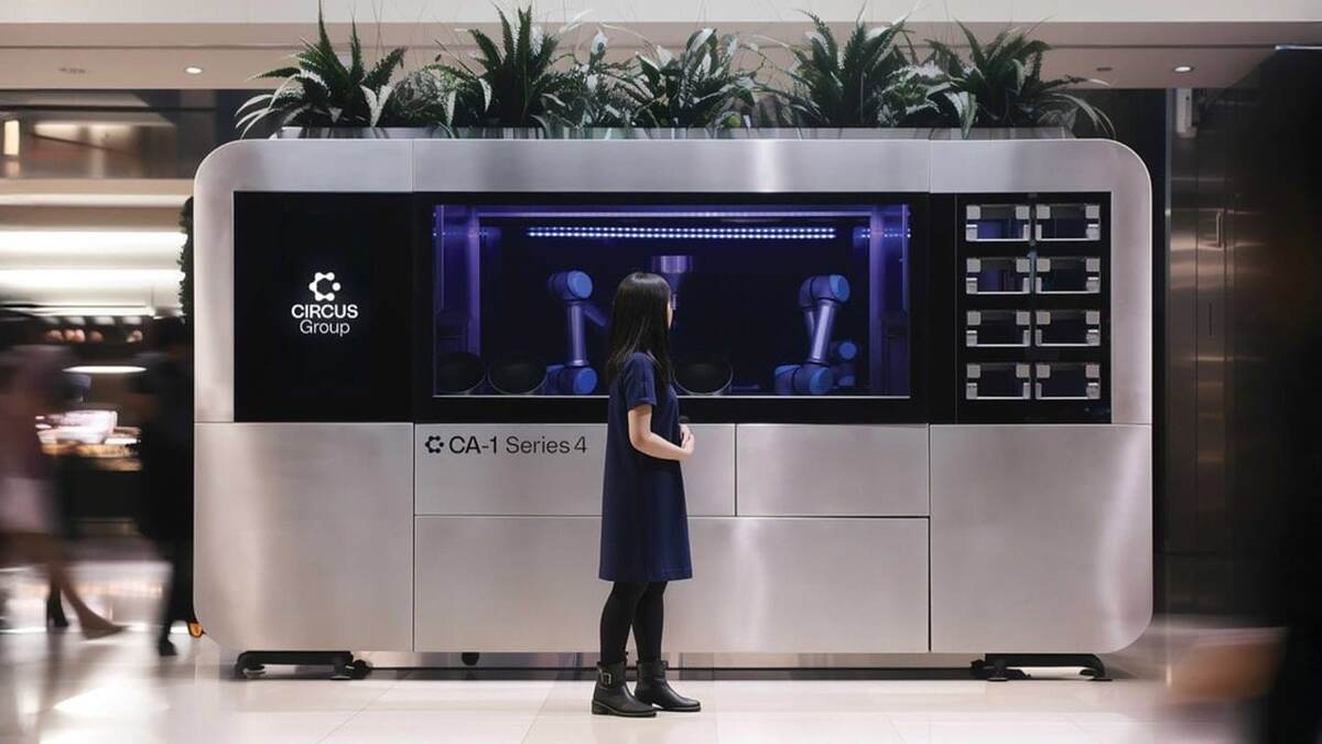 Компания Circus SE из Мюнхена создала робота-повара CA‑1, размещённого в стеклянном боксе размером не больше маленькой ванной комнаты. Две управляемые экраном или голосом механические руки берут ингредиенты из охлаждаемых контейнеров, помещают их в кастрюлю, варят на индукционной плите, а затем подают готовое блюдо через окно выдачи. Человеку не нужно переворачивать еду, протирать поверхности или следить за очередью заказов — кухня полностью автономна. Сегодня очередь за едой от CA‑1 уже выстраивается у супермаркета REWE в немецком Дюссельдорфе. Клиент просто подходит к экрану, выбирает блюдо, оплачивает заказ — около 6 евро (~ 590 рублей) — и через одну-две минуты получает горячий обед. Робот способен готовить до 120 блюд в час, то есть одно каждые 30 секунд. Для большинства поваров-людей такой темп был бы невозможен во время обеденного часа, но машина не устаёт и не берёт больничных. Последняя версия CA‑1, 4-й серии, стала легче на 450 кг по сравнению с предыдущими моделями. Инженеры