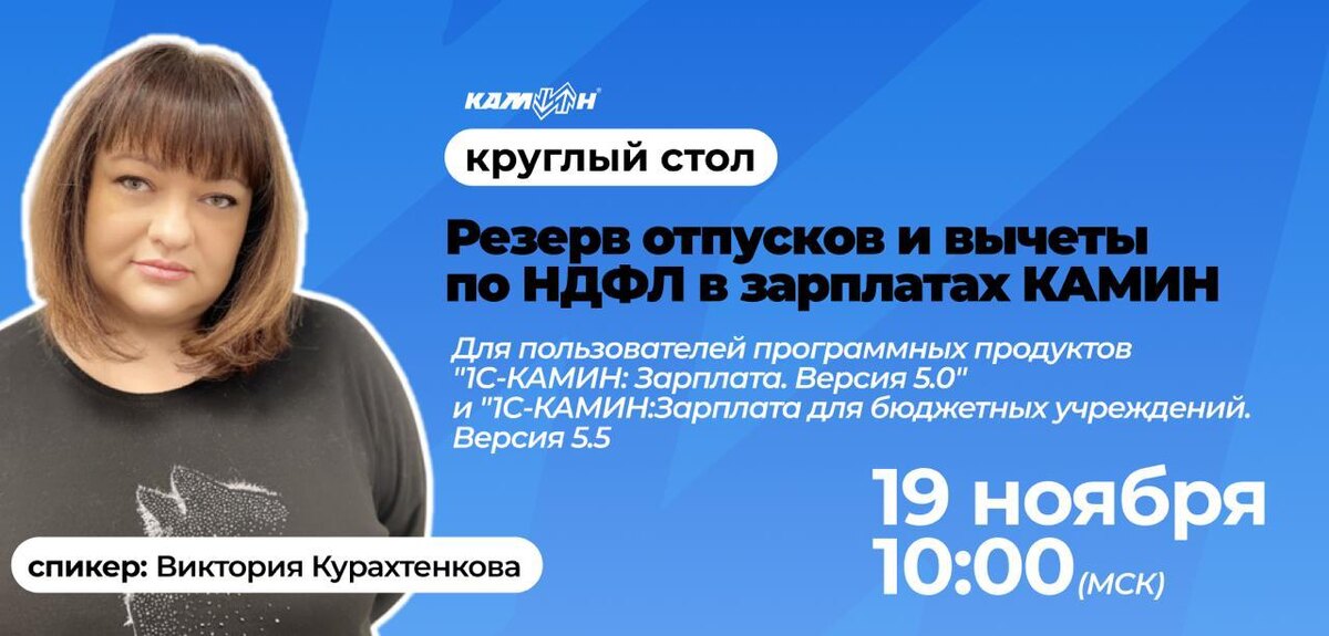 ☝️ Каждый бухгалтер знает, что расчёт отпусков и вычетов по НДФЛ всегда остаётся той частью работы, где любая мелочь может обернуться серьёзными последствиями. 😥 Исправляя один показатель, легко задеть соседний и потом долго искать, где именно всё пошло наперекосяк. 📌 Чтобы таких ситуаций не возникало, приглашаем вас 19 ноября на круглый стол «Резерв отпусков и вычеты по НДФЛ в зарплатах КАМИН». 😐 Вместе мы разберём, как корректно формировать резервы и оформлять вычеты, избегая распространённых ошибок и двусмысленных трактовок. 🎙 Спикер: Виктория Курахтенкова, руководитель линии консультаций ГК КАМИН В программе: 👌 Расчёт резерва отпусков и алгоритм его корректного формирования 👌 Сложные случаи: неполный день, новые сотрудники, индексация 👌 Правила и ошибки при применении стандартных и имущественных вычетов 👌 Как быстро исправить неточности в текущем и прошлом периодах За один час вы получите готовые алгоритмы, сможете задать вопросы и убедитесь, что расчёты под вашим контр