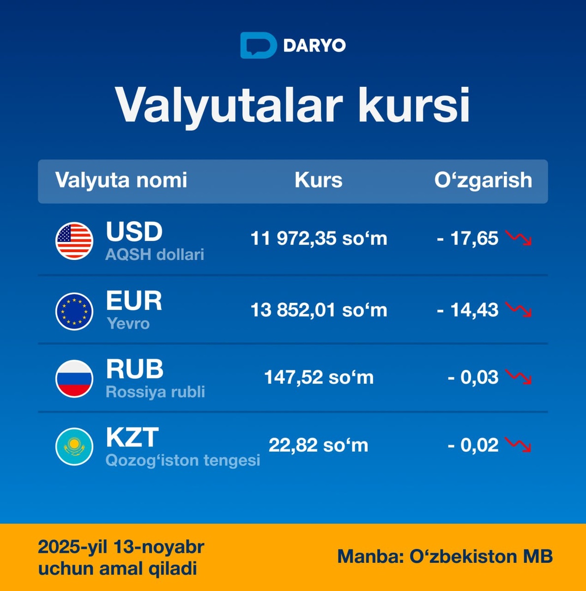 🇺🇸 dollar 11 972,35 soʻm (-17,65)