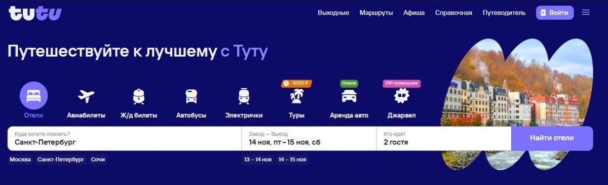 👉Напоминание: На сайте Tutu.ru кроме билетов на поезда, самолеты , автобусы и многое другое , есть еще удобный поиск отелей, всегда можно найти самые выгодные предложения