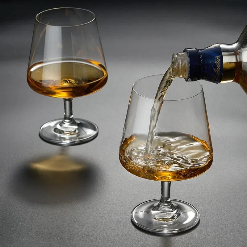 Снифтер (от английского «sniff» — «нюхать») — бокал на короткой ножке с большой чашей, сужающейся кверху. Изначально снифтеры использовали для коньяка, но позже их стали применять и для виски. Некоторые особенности снифтеров: Шарообразная форма помогает испарению спиртовых соединений, делая вкус мягче. Благодаря зауженному горлышку аромат как можно дольше остаётся в бокале. Благодаря короткой ножке снифтер удобно держать в руках, передавая напитку тепло для ещё большего раскрытия аромата. Некоторые виды снифтеров: Классический. Наиболее распространённый вариант, чаша в форме луковицы. Средний объём классического снифтера — 200–250 мл. С трубкой. Нижняя часть чаши снабжена изогнутой узкой трубкой. Бренди медленно потягивают через неё. Вобл. Классический снифтер без ножки, основание чаши опирается на стеклянный выступ. Рюмка-капля. Фужер небольшого объёма на высокой ножке, чаша похожа формой на каплю. Тюльпан. Сосуд тоньше и изящнее, чаша напоминает по форме венчик одноимённого цвета.