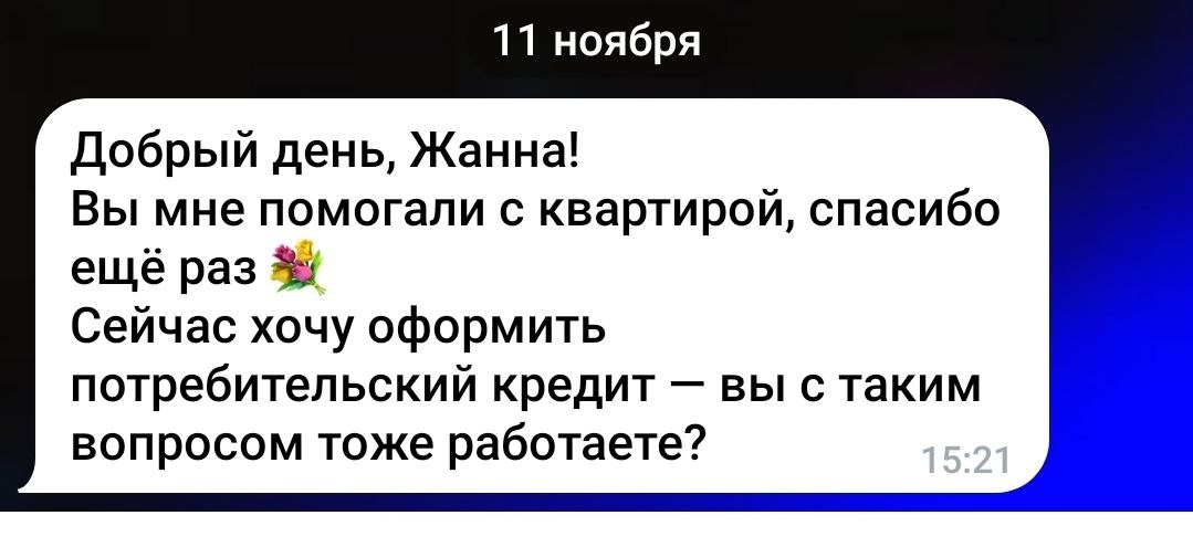 📩 Недавно получила вопрос, по потребительскому кредиту. Иногда для решения личных или семейных задач не хватает именно потребительского кредита — на ремонт, обучение, отдых или закрытие других кредитов. Я помогаю подобрать и оформить подходящий вариант, чтобы процесс прошёл спокойно и без лишней бюрократии: ✅ Подбираю оптимальные условия в банках-партнёрах ✅ Помогаю заполнить анкету и корректно оформить заявку ✅ Сопровождаю до получения решения Решение принимается онлайн, а средства можно получить уже в день одобрения. Если вы планируете крупную покупку или хотите объединить кредиты — напишите, подскажу 💬 📌 Важно понимать: я не выдаю кредиты и не представляю конкретный банк — я помогаю оформить кредит безопасно и с максимальными шансами на одобрение. Если у вас тоже назрел вопрос по кредиту — пишите, разберём индивидуально 💬 📲 В личные сообщения здесь, в соцсети 📞 Или по WhatsApp/Telegram: +7 927 060 1896 Стараюсь отвечать максимально быстро, чтобы вы могли оперативно двиг