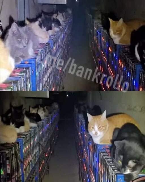 В Китае бездомные коты и кошки остановили работу майнинг-центра Они легли спать на оборудовании и заблокировали систему охлаждения @geonrgru | YouTube | sponsr.ru