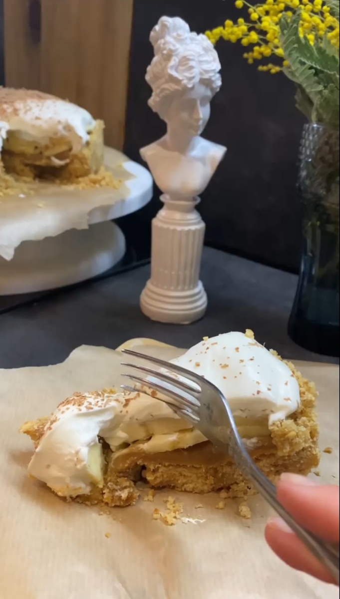 Это один из самых не сложных, но при этом очень вкусных и нежных десертов 🍮 Готовы испытать райское наслаждение? Тогда подписывайтесь на мой хэштег, чтобы не потерять рецепты любимых блюд #рецептыpushika ✅ и готовить! ИНГРЕДИЕНТЫ ✅ 250 г печенья ✅ 100 г сливочного масла ✅ 250 г сливок 33-35% ✅ 20 г сахарной пудры ✅ 250 г вареной сгущенки ✅ 2 банана ✅ шоколад для украшения ПРИГОТОВЛЕНИЕ 👩🏼🍳 ✅ В блендере или скалкой измельчаем печенье в крошку. ✅ Сливочное масло растапливаем и добавляем в крошку, хорошо перемешиваем. ✅ Форму застилаем фольгой или пищевой пленкой, выкладываем песочную массу в форму и хорошо утрамбовываем делая высокие края, убираем на час в морозилку. ✅ В это время взбиваем холодные сливки и сахарную пудру до мягких пиков и убираем в холодильник. ✅ Когда основа застыла, аккуратно извлекаем ее из формы, распределяем сгущёнку, далее слой бананов и закрываем все взбитыми сливками, украшаем тертой шоколадной крошкой! ✅ Даем настояться пару часов в холодильнике. Г