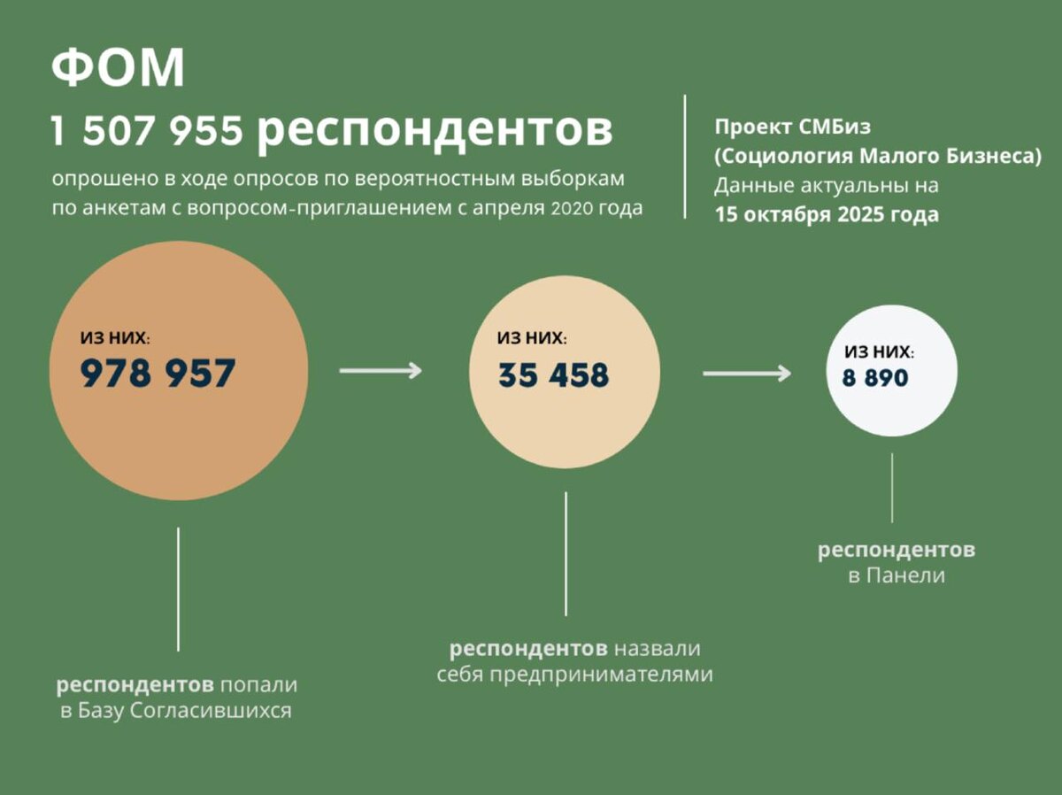#СМБиз #ПМБ Панель Малого Бизнеса (ПМБ) – это база предпринимателей, согласившихся участвовать в регулярных опросах ФОМа. По данным на середину октября 2025 года, ПМБ насчитывает 8890 участников. Индивидуальных предпринимателей среди них в два раза больше, чем тех, кто имеет статус юридического лица. При этом у большинства нет наемных работников. Подробнее: Данные о текущем состоянии Панели Малого Бизнеса #бизнес #СоциологияМалогоБизнеса #ПанельМалогоБизнеса 📱 Фонд Общественное Мнение