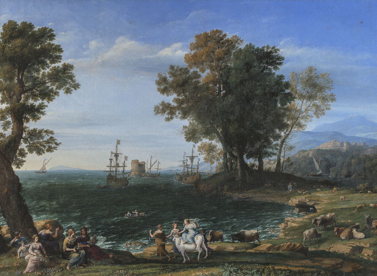 Французский художник Клод Лоррен провёл свою жизнь в Италии. В образах итальянской природы он нашел воплощение своего идеала. Природа стала единственной темой творчества французского мастера, передача света и воздушного пространства определила эмоциональное звучание его картин. На переднем плане картины представлен античный миф о похищении Европы, изложенный в сочинении Овидия «Метаморфозы». Созвучие тёплых золотисто-коричневых тонов переходит в прозрачные, холодные оттенки кудрявых деревьев, играющих роль кулис для второго плана. Делимся с вами деталями картины, которые вы могли не заметить. Увидеть пейзаж Лоррена можно в зале 21 Главного здания музея (Волхонка, 12). #Пушкинскийэкспозиция