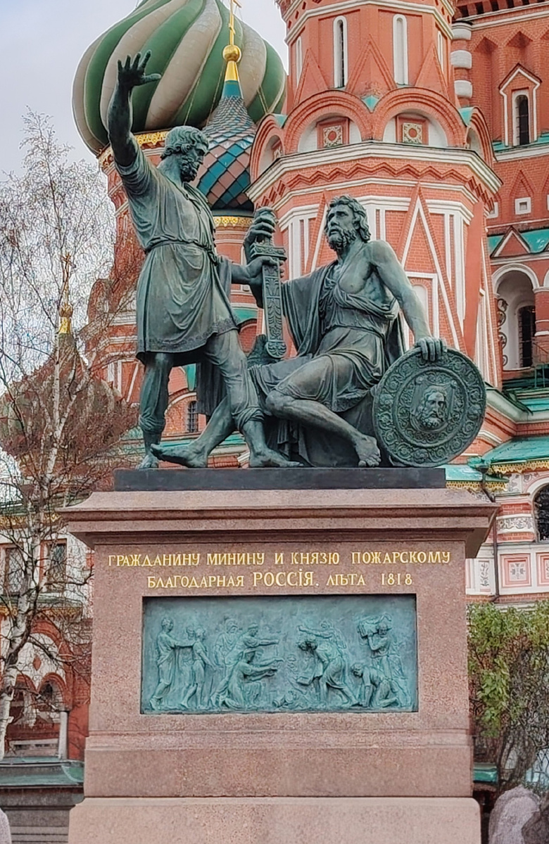 Совсем недавно прошел государственный праздник, который ежегодно отмечается в России 4 ноября - День народного единства. В детском саду ребенку рассказывали историю возникновению данного праздника и нам захотелось ему показать памятник, чтобы он до конца проникся этим. Первым скульптурным монументом в Москве, открытый 4 марта 1818 года на Красной площади, считается Памятник Минину и Пожарскому. Памятник посвящён событиям 1612 года, когда объединённое народное ополчение под предводительством нижегородского старосты Кузьмы Минина и воеводы князя Дмитрия Пожарского освободило Москву от польских захватчиков. Но идея об установке памятника героям возникла лишь в 1802 году. Скульптором данного проекта был назначен Иван Мартос. В силу различных причин (финансовые проблемы и Отечественная война 1812г.), работа над малой моделью памятника началась в конце 1811 года. Наконец, в 1816 году произошла отливка, занявшая всего 9 минут. Впервые в России сложная композиция, состоящая из двух фигур, бы