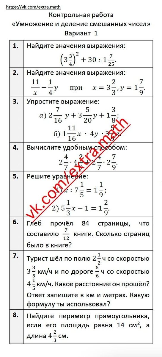 📆На 9-13 учебных неделях ученики 6 класса изучают тему “Умножение и деление смешанных чисел" (24 ч) Уроки 42-65. По этой теме у меня есть материалы: 🆗"ОК+СР+КР «Умножение и деление смешанных чисел» digital.wildberries.ru/offer/152984" 🆗ВПР Рациональные числа (№1-3, их можно отрезать) digital.wildberries.ru/offer/513489 📚 Все мои материалы в таблице: vk.cc/cHlmAx Открывайте вкладку с нужным вам классом.