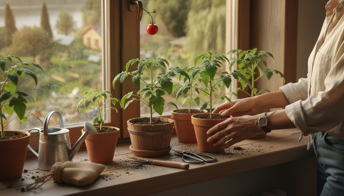 Вечером в ноябре у нас на кухонном окне мягко гудит светодиодная фитолампа, под ней — три горшка на поддоне, земля тёплая на ощупь, пахнет слегка гуматом. В форточке тонкая полоска конденсата, батарею под подоконником мы прикрыли старым пледом, чтобы не сушила листья. На одном кустике янтарные бусинки уже совсем налились, на другом красные помидорки ещё с зелёной точкой у плодоножки. Каждый раз, глядя на эту картину, вспоминаю, с чего начинали: просто хотели попробовать томаты для подоконника зимой, без теплицы и танцев с бубном. Вышло лучше, чем ожидали, но только после того, как подобрали правильные сорта и наладили свет.