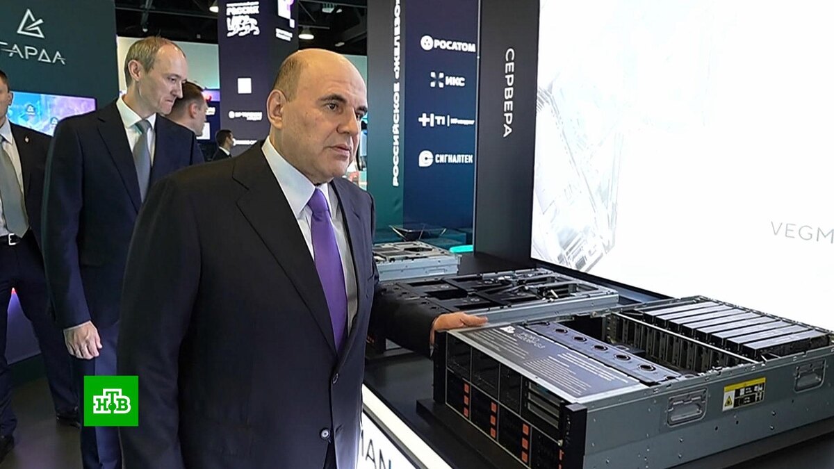 [ Смотреть видео на сайте НТВ ] IT-индустрия в России сегодня лидирует по темпам роста среди всех крупных отраслей. Об этом заявил Михаил Мишустин, выступая в Москве на форуме «Цифровые решения». Это площадка для диалога между государством и бизнесом. В рамках форума в Национальном центре «Россия» открылась выставка отечественных технологий и проектов. Михаил Мишустин принял участие в пленарной сессии форума информационных технологий и осмотрел вставку передовых разработок в сфере связи, кибербезопасности и госуслуг. Экспозицию разделили на восемь тематических зон по ключевым направлениям цифрового развития страны, в том числе «Связь и телеком», «Госуслуги», «Софт» и «Кибербезопасность». Один из стендов посвящен российскому «железу» — это процессоры и серверы для обработки и хранения данных, без которых технологический суверенитет был бы в принципе недостижим. По сути, это ядро и основа многих разработок, в том числе программ для обучения отечественных систем искусственного интеллекта.