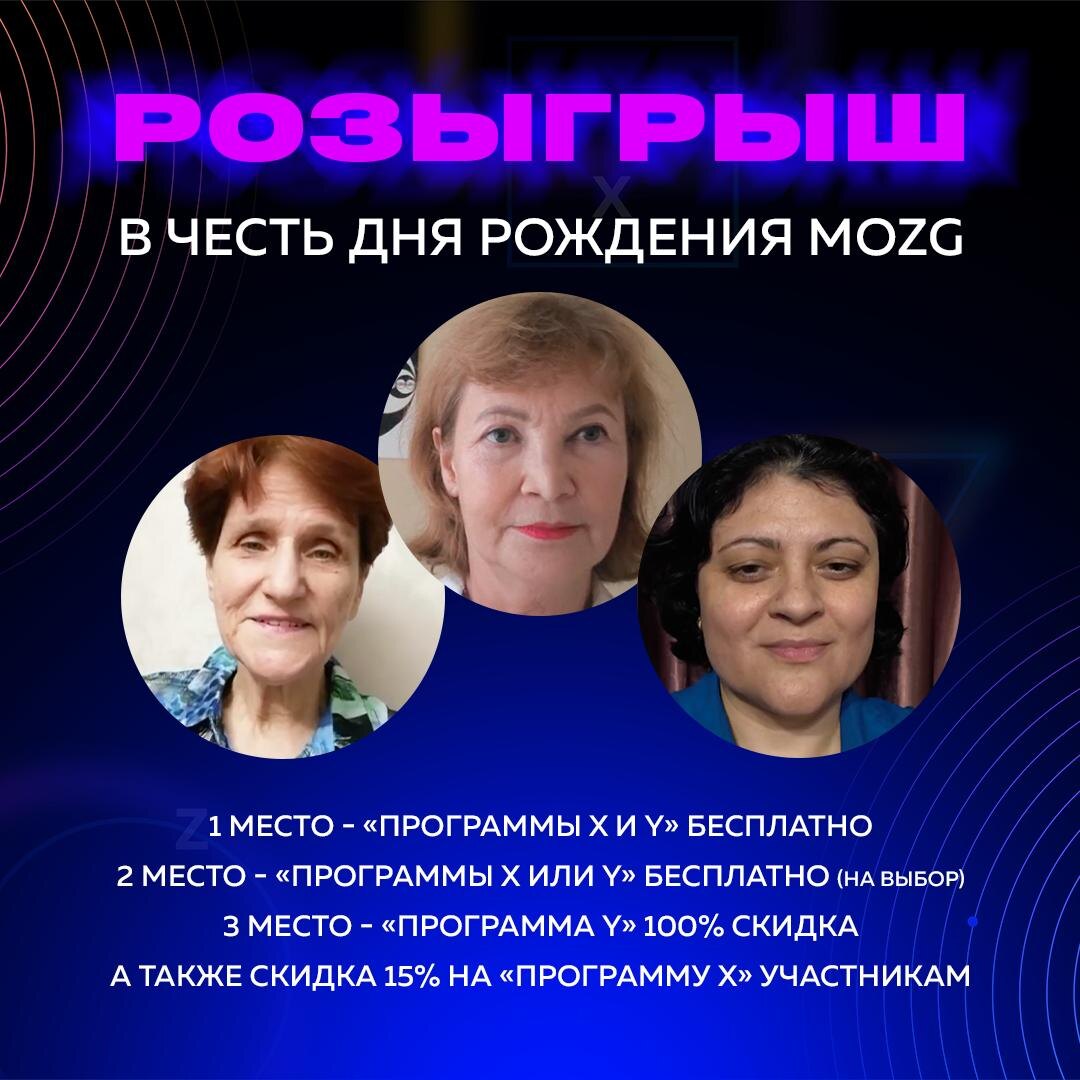 ⚡️ ИТОГИ РОЗЫГРЫША ⚡️ Розыгрыш в честь Дня Рождения MOZG'a подошёл к концу! 🥇 1 МЕСТО: Татьяна Сулягина 🥈 2 МЕСТО: Натали 🥉 3 МЕСТО: Наталья УЧАСТНИКАМ: Скидка 15% на «Программу X» Поздравляем победителей! 🔥 Просим связаться с нами для получения подарков в @mozgcentertg 🙏🏻