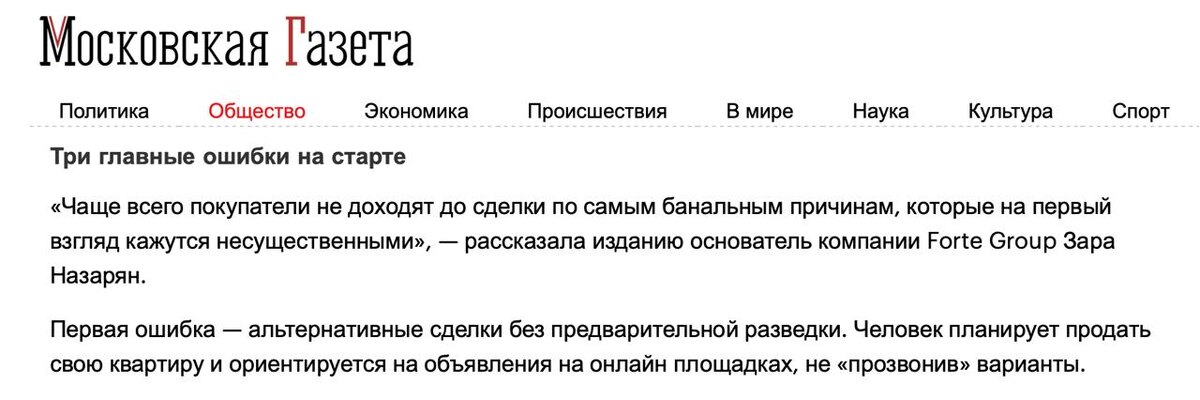 Вышел мой комментарий для Московской Газеты 🙌🏻 Разобрали главные ошибки на старте сделки с недвижимостью. - какие есть "ловушки" и как в них не попасть? - как действовать в период высокой ключевой ставки? - как правильно проверить юридическую чистоту сделки? Эти и другие вопросы разобрали в этой статье: https://mskgazeta.ru/obshchestvo/rossiyanam-nazvali-glavnye-oshibki-na-starte-sdelki-s-nedvizhimost-yu-15582.html