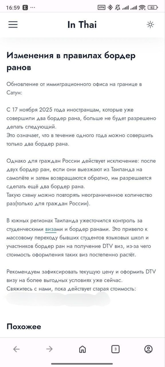 Из телеграмма канала Dear, Alena! узнали про новости о бордер-ранах в Таиланде. С 17 ноября 2025 (всего лишь через 5 дней) больше двух бордерранов в год станет делать невозможно. ⛔️ Не известно, действительно ли будут эти ограничения работать и насколько долго - но пока компании-помогаторы действительно отменяют бордеры после этой даты. Также вроде как будет действовать исключение для граждан РФ - при влете самолётом добавятся ещё +2 разрешенных бордера в год - если на них разрешат делать продления, выйдет собственно год (60+30). Так что следите за новостями и планируйте путешествия с учётом этой информации. А при возможности - оформляйте DTV визу для длительного проживания. #новости #Таиланд #документы #визы #бордерран
