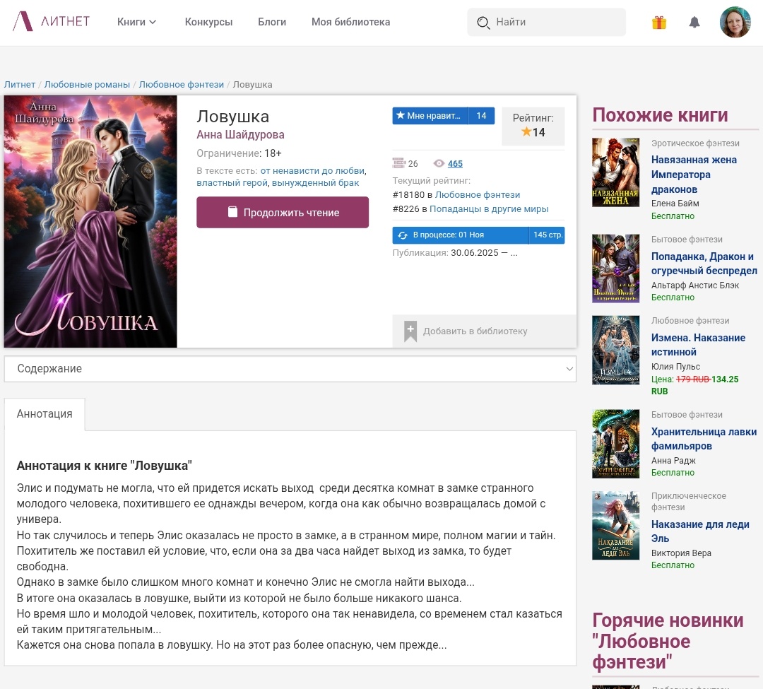 27 сентября я прервала вести блог на Дзене, а 3 ноября вновь возобновила. И с 3 по 11 ноября я выложила 10 статей. Вообще их бы было 9, но вчерашнюю статью пришлось разделить из-за большого количества скринов. Ну, так что буду считать по факту – статей 10. Так что эти 8 дней прошли плодотворно. Однако перерыв в ведении блога прошел еще плодотворней, ведь в это время я активно писала продолжение романа «Ловушка». 27.09.25 я начала писать продолжение романа и сразу же стала выкладывать новые проды на Литнет. Не знаю точную статистику по знакам, но получается, что 27 я выложила остаток 10 главы, а 28 я выложила полностью 11 главу. С этой даты и буду считать количество знаков. Глава 11, 28.09.25 – 9510 знаков с пробелами. Глава 12, 29.09.25 – 8894 знака с пробелами. Глава 13, 30.09.25 – 20011 знаков с пробелами. Глава 14, 15.10.25 – 20943 знака с пробелами. Глава 15, 19.10.25 – 23525 знаков с пробелами. Глава 16, 19.10.25 – 19161 знак с пробелами. Глава 17, 27.10.25 – 25595 знаков с пробел