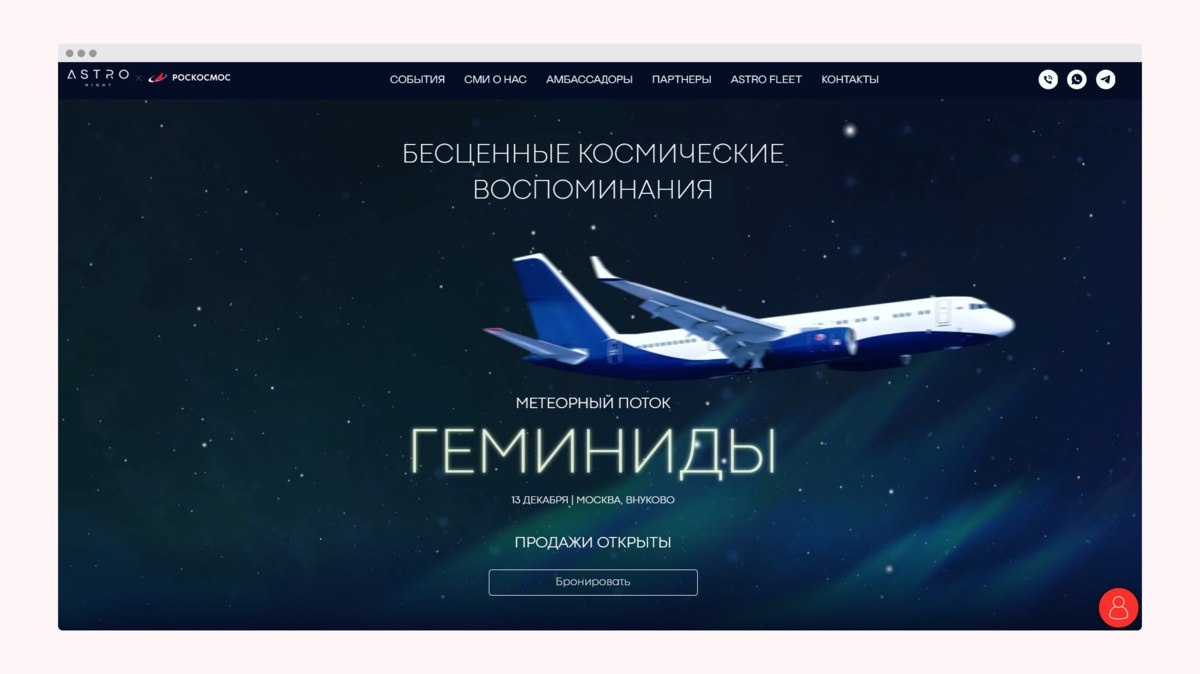 «Роскосмос» анонсировал спецрейс Astro Night для наблюдения метеорного потока Геминиды — «без помех от облачности и городского света». Пассажиры вылетят из московского аэропорта Внуково и вернутся туда же. Билеты стоят от 95 тысяч рублей vc.ru/marketing/2335047