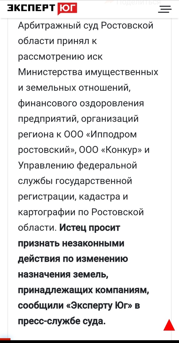 Вот это ничего себе. Как и обещал, слежу за судьбой ростовского ипподрома из моего детства. После того, как губернатор фактически отчитал федерального застройщика из Краснодара, события развиваются стремительно. Давайте будем объективны, в строительной отрасли нужно наводить порядок, но... А кто переводил учаток? Неометрия купила ипподром у знаменитой компании "Юг-Руси". Это ещё они переводили или уже Неометрия? А вот ещё вопрос, а какого черта наш любимый Росреестр изменил назначение? Какие у него были основания, если Минимущество Ростовской области считает это незаконным? Вопрос то в арбитраже, а что насчёт ответственности? Если Неометрия купила уже с устоявщимся статусом, то это решение несправедливо. Люди заплатили деньги, хотят вкладываться в строительство. Выносим за скобки хорошо они там построят или плохо, это тоже в некотором роде ответственность местной власти, что они там согласуют. Но вот просто так обнулять ценность 24га в центре города инвестору это то, что называется
