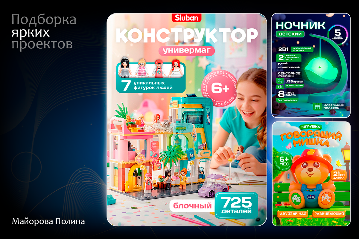 Создала яркий, жизнерадостный дизайн, который сразу погружает в атмосферу детской мечты