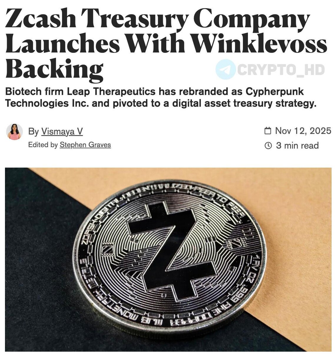 Π½ΠΎΠ»ΠΎΠ³ΠΈΡΠ΅ΡΠΊΠ°Ρ ΠΊΠΎΠΌΠΏΠ°Π½ΠΈΡ Leap Therapeutics ΠΊΡΠΏΠΈΠ»Π° #ZEC Π½Π° $50,000,000 Π² ΡΠ²ΠΎΠΈ ΡΠ΅Π·Π΅ΡΠ²Ρ β original βͺ ΠΠ° Π±Π°Π»Π°Π½ΡΠ΅: 203,775 ZEC. βͺ Π‘ΡΠ΅Π΄Π½ΡΡ ΡΠ΅Π½Π° ΠΏΠΎΠΊΡΠΏΠΊΠΈ: $245. Π Leap Therapeutics (Π°ΠΊΡΠΈΠΈ ΠΊΠΎΡΠΈΡΡΡΡΡΡ Π½Π° Nasdaq) ΠΏΡΠΎΠ²Π΅Π»ΠΈ ΡΠ΅Π±ΡΠ΅Π½Π΄ΠΈΠ½Π³, ΠΈΠ·ΠΌΠ΅Π½ΠΈΠ² Π½Π°Π·Π²Π°Π½ΠΈΠ΅ Π½Π° Cypherpunk Technologies, ΡΠ΅ΡΠΈΠ»ΠΈ ΡΠΎΠ·Π΄Π°ΡΡ ZEC-ΡΠ΅Π·Π΅ΡΠ² ΠΈ ΠΏΡΠΈΠ²Π»Π΅ΠΊΠ»ΠΈ $58m ΠΎΡ Winklevoss Capital. Crypto Headlines