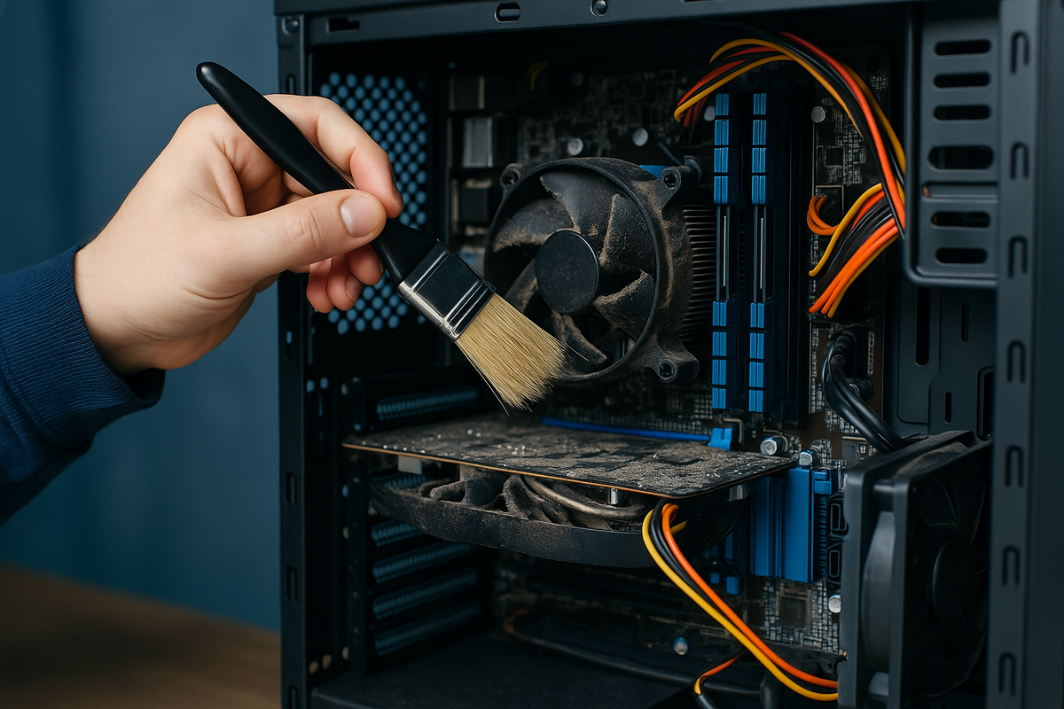 Вот базовый алгоритм: ❗ Не используй пылесос — он может создать статическое электричество и повредить электронику. Если компьютер шумит, сильно греется даже в простое, или ты не уверен в своих силах —