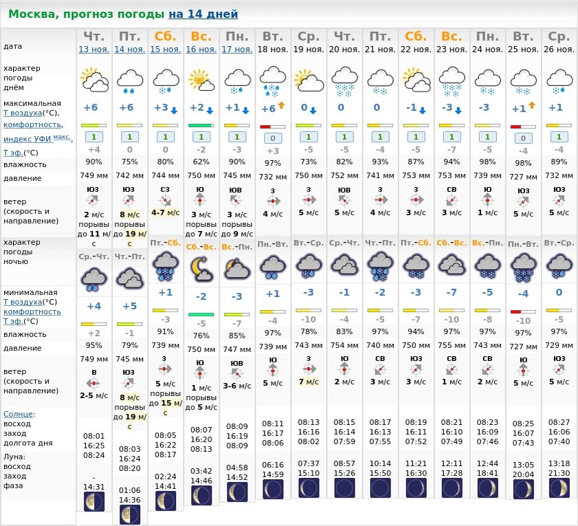 Прогноз погоды на 14 дней