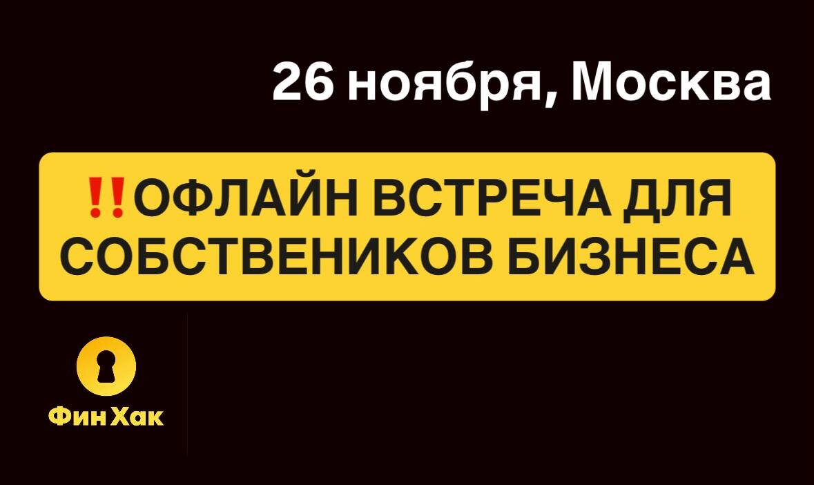 Три страха предпринимателя: кассовый разрыв, налоговая проверка, бесконечные судебные процессы. 26 ноября в 17.00 живая встреча предпринимателей, юристов и финансистов 📍Москва, Дмитровское шоссе. Будем разбирать ваши вопросы, обсуждать варианты решений и говорить о насущном и волнующем сейчас всех. Среди вопросов к обсуждению: ▪️Изменение налоговых ставок и корректировка бизнес-модели ▪️Управленческий учет: как наконец-то наладить и вести регулярно ▪️Конфликты между собственниками и с контрагентами. Как не утонуть в судах? ▪️И любые, которые вы захотите обсудить в части решений для бизнеса. Участие для собственников и генеральных директоров бесплатное. Формат максимально неформальный, «без галстуков». Умничать могут все, реально решать вопросы немногие. Для регистрации на мероприятие пишите @FinhackService