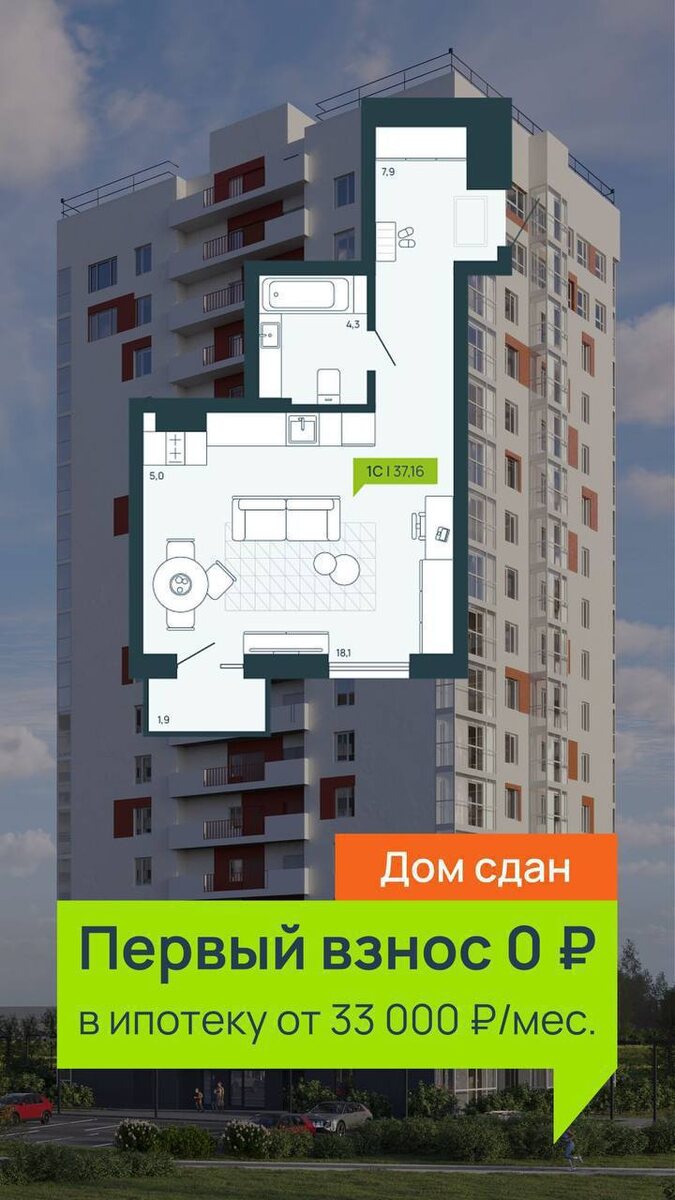 Добро пожаловать в новый дом, который уже сдан — можно заселяться сразу после покупки! Эта квартира отлично подойдёт для молодых пар и всех, кто ценит комфорт, функциональность и выгодные финансовые условия. — Первый взнос — 0₽ по семейной ипотеке! — Низкий ежемесячный платёж — от 33 000₽ — Планировка dream: просторная кухня-гостиная 23,1 м², уютная ванная и удобная прихожая • Развитая инфраструктура района: школы, детские сады, магазины и зоны для прогулок рядом с домом. Оставляйте заявку чтобы получить консультацию специалиста, персональный расчет и сопровождение без комиссии!