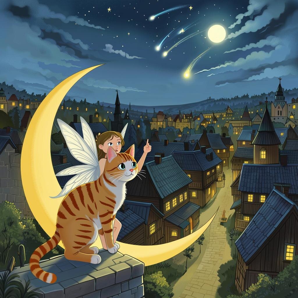 Двое сидели на краю луны и смотрели на звёзды. — Слушай, а давай поиграем? — Не, я устала. — Почему? Ночь-то ещё впереди! — Устала я, просто хочу посидеть и помолчть. — А мне что делать? — Успокойся. — Я не хочу, мне пошалить охота. — Ох, какой же ты беспокойный... Маленькая фигурка, паря крыльями, облетела вокруг луны. — Люди спят, что ты от них хочешь? — Могу кому-нибудь показать страшилку. — Не стоит, они этого не заслужили. — Думаешь? — Уверена. Лучше подумай, что скажут наши, если нас поймают? — До сих пор же не ловили. Как-то тебе удавалось оставаться незамеченной. — А твои? — Моих вовсе не интересуют небеса, больше глазеют под ноги. Вторая фигурка нервно повиляла хвостом. — Не волнуйся, всё устроится. — Ой, сомневаюсь... Хозяйка совсем свихнулась, покоя не даёт. — А что случилось? — Фигурка с крыльями кружила над месяцем. — Совсем меня, уважаемого кота, за глупого держит. Над нами теперь уже весь район потешается. Такие дела продолжаются — с вожаков скоро снимут. Куда я денус